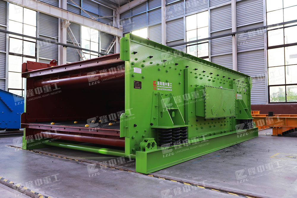 以三軸塊偏心激振器為激振源,以橡膠支承彈簧為彈性元件,以篩箱激振器等為可動部分的篩分設備。其振動器的三根軸上裝有相等偏心質量、相同偏心半徑的配重塊。動力由電機經皮帶傳遞至主動軸,再經速比為1的齒輪進行傳動,使三根軸同速旋轉,從而產生激振力,使篩箱作強制連續的橢圓運動。物料以此運動為動力,在水平的篩面上沿圓周方向作不斷的拋擲運動,在拋起松散分層的同時向前運動,周而復始地完成粒度分級和向前輸送的過程。